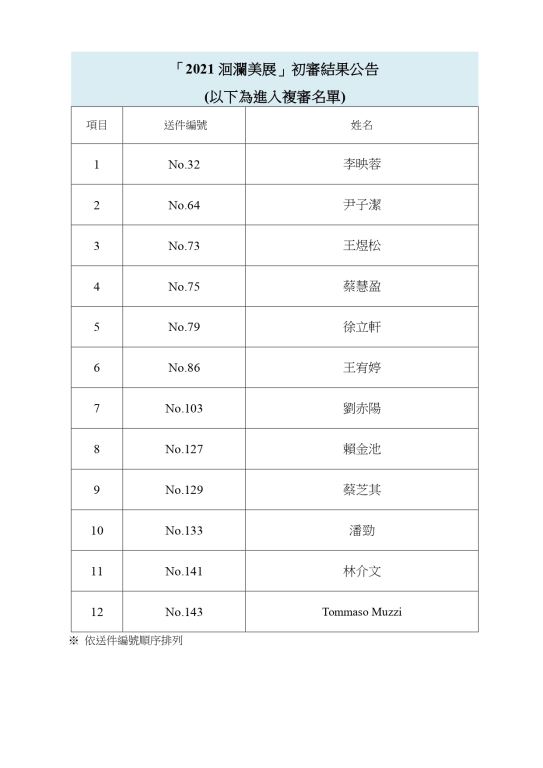 「2021洄瀾美展」初審結果公告