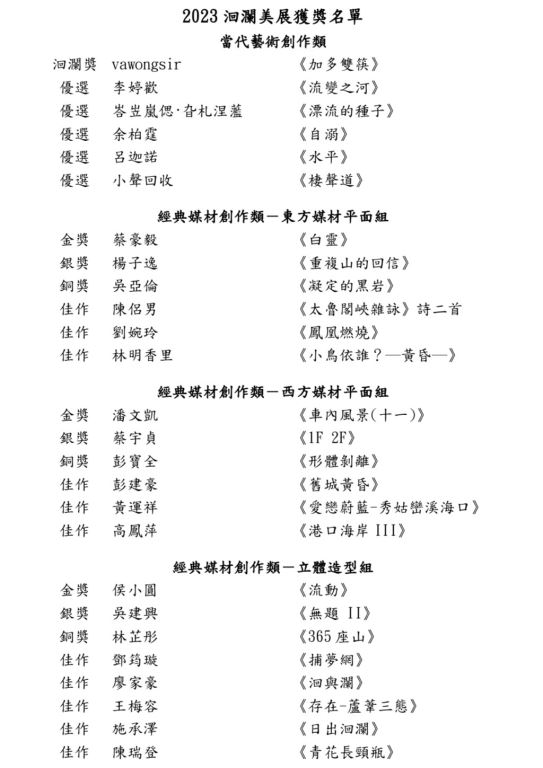 2023洄瀾美展獲獎名單及展覽資訊