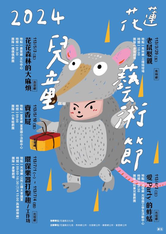 本次將在秀林鄉、光復鄉、壽豐鄉、富里鄉進行四場兒童劇演出