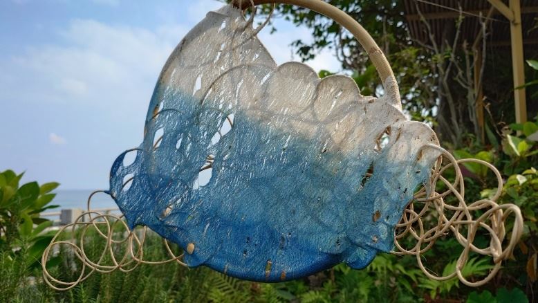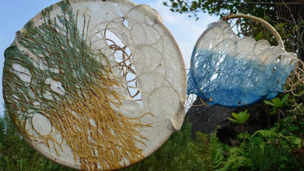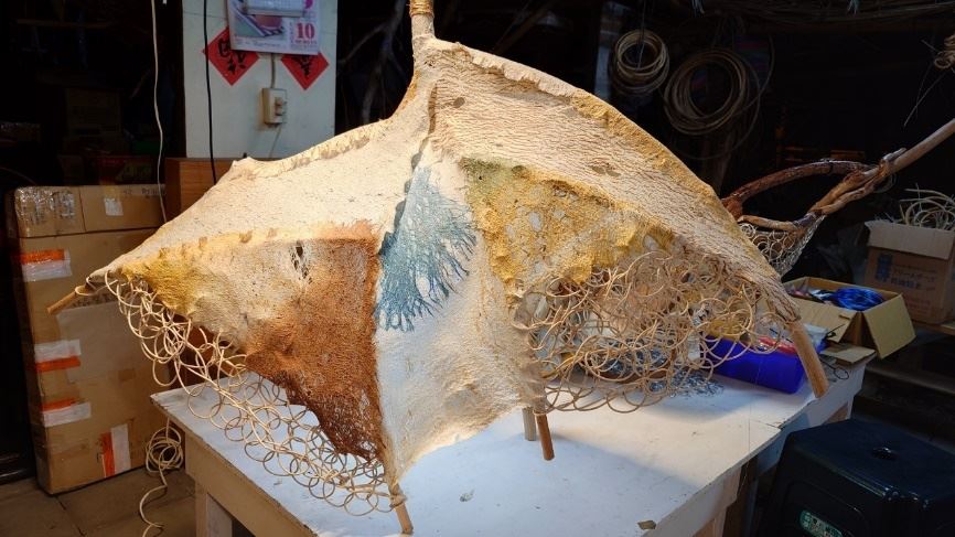 材質:構樹樹皮布、薯榔染料、樹籐、紗布、鐵絲網、絲瓜布等