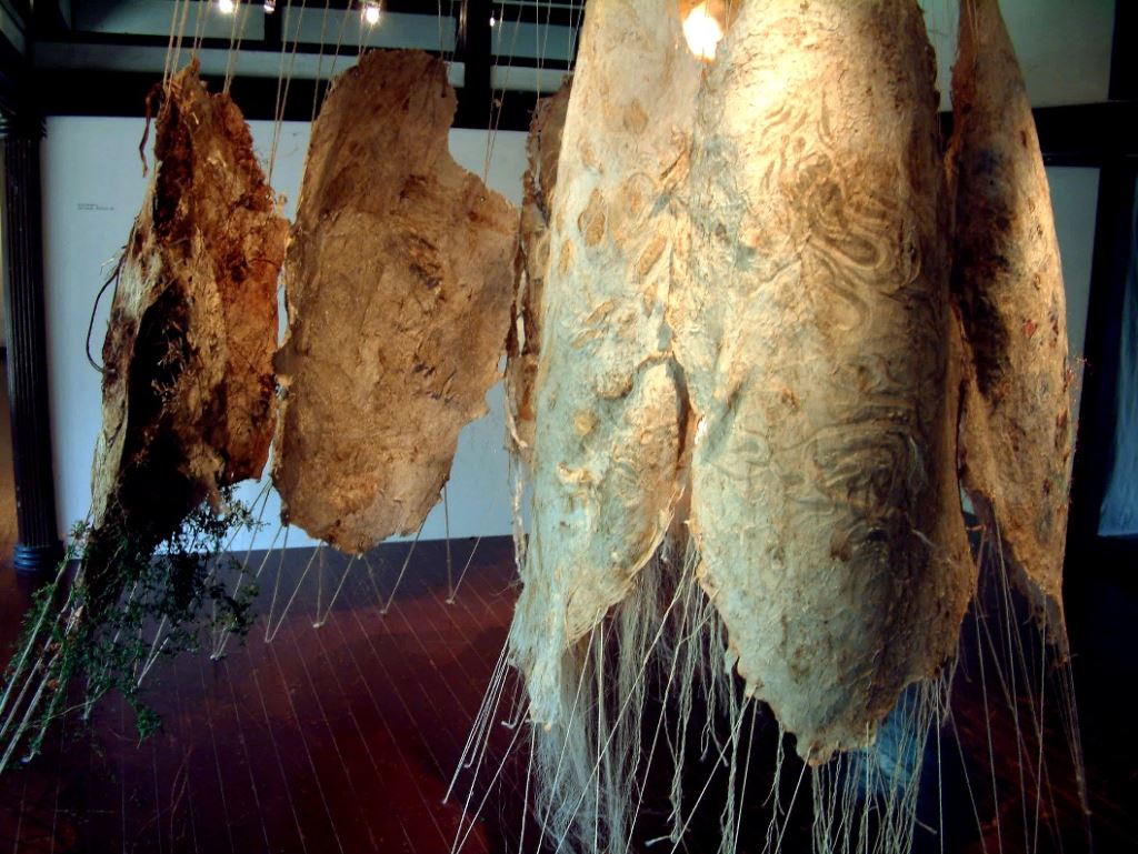 07. <輕擊著 那回聲>,是作者最早期,第一件大型樹皮布裝置創作。