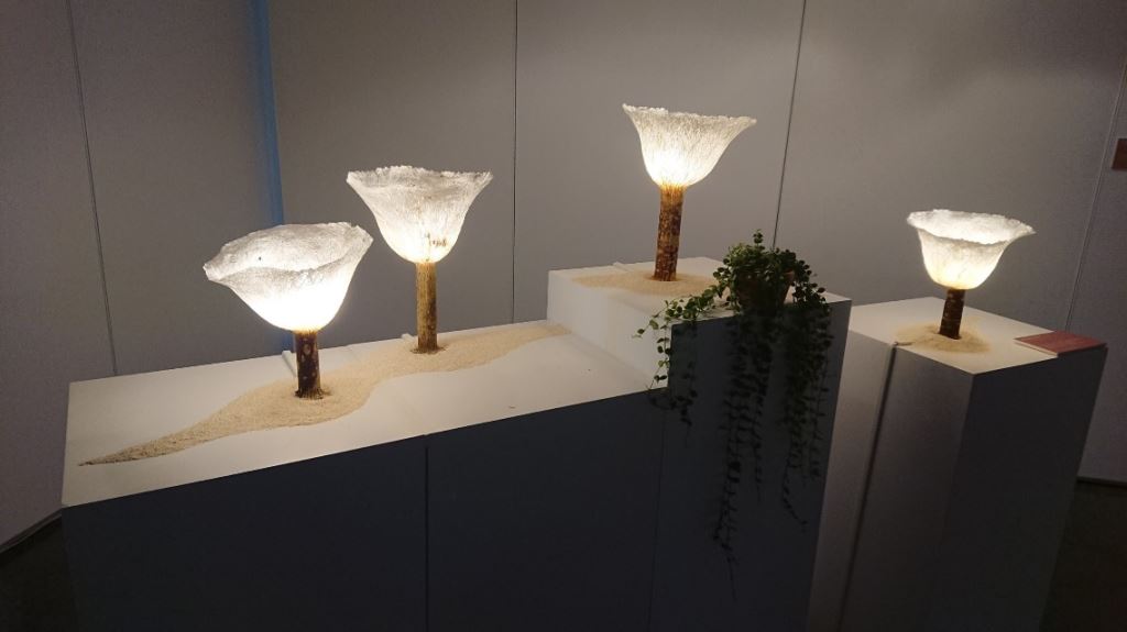 材質:構樹樹皮花、構樹枝幹,染料與漆,燈具。