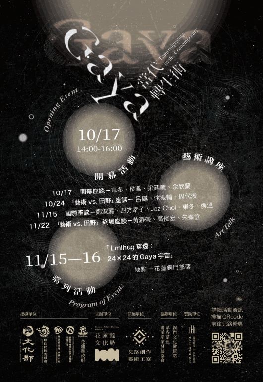 「GAYA」真的能和當代的生命與世界對話嗎?如果可以,祂在哪裡?如果不行,又是為什麼?「轉生」不再意指存在狀態的復燃,事實上,祂或未曾死灰,也不一定能在廣袤的眾生相裡找到永存的公式;GAYA更可能是無盡的流動。三年的計畫執行,我們已舉辦過數次部落踏查、工作坊、書寫出版與藝術活動,《GAYA:當代轉生術》是2025年階段性的藝術展演之一。在這些雜揉的、多元的、歧異的關係與田野裡,GAYA的光影依舊難以描摹,只是引導我們走向更多的試煉與提問之中。
