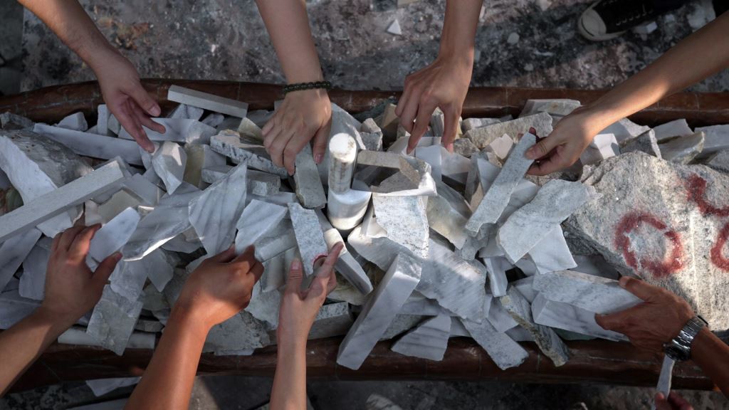 見證了產業何以從破裂到重建,為讓觀者在感官與思考之間尋得共鳴,展覽更設置「拼出未來」互動區,滿桌的小石塊象徵災後遺留的碎片,也代表著尚待重構的記憶,邀請你我揮灑創意自由拼貼,飽含對未來的想像與祝福,讓一塊塊方石重組成新的圖像故事,體驗破碎如何轉動出新的可能。