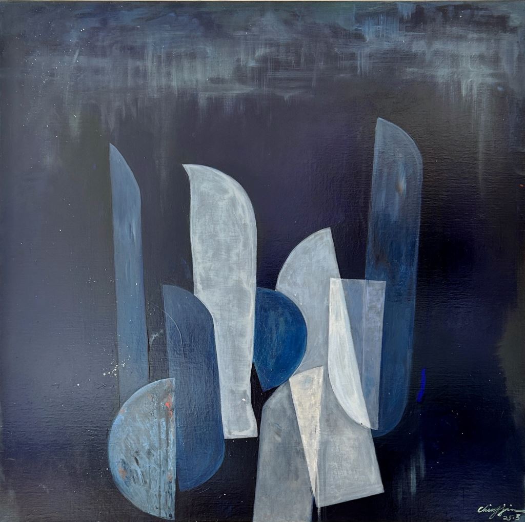 本展以「潛靜」為核心概念,回應現代生活節奏下人們對內在安定的渴望。蔡青衿的創作多取材於自然意象,並非具體再現實景,而是來自內心深處的山海記憶與感知,轉化為畫布上的抽象風景,呈現出穩定、沉靜且富含情感層次的視覺語彙。