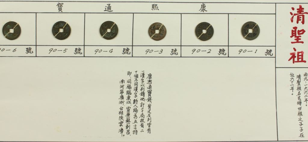 「康熙通寶」背文左列皆有一漢字以別鑄地,計二十局故有二十個不同漢字。