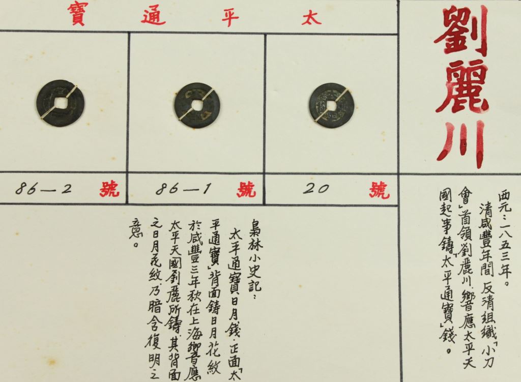 西元1853年。清咸豐年間,反清組織「小刀會」首領劉麗川響應太平天國起事鑄「太平通寶」錢。