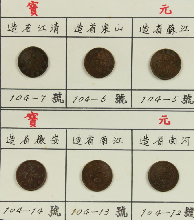 西元1900年,德宗光緒二十六年,各省奉准鑄造銅元,正面上端或兩邊鑄明鑄造省及地區別。