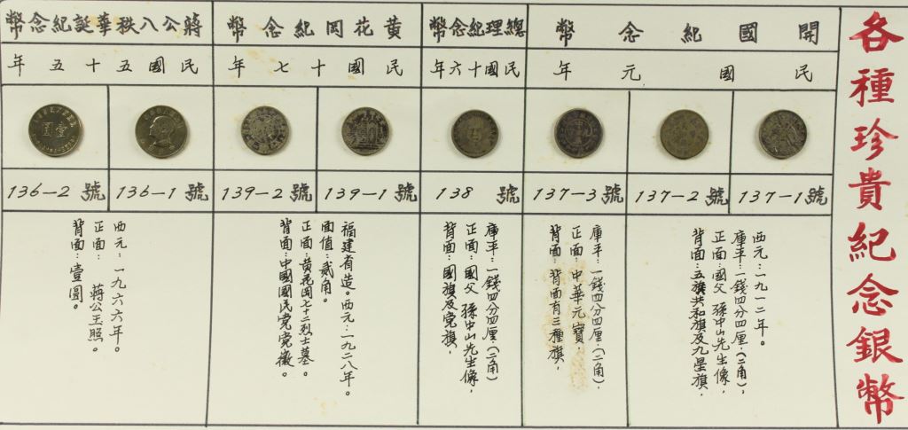 中華民國「開國紀念幣」/「總理紀念幣」/「黃花崗紀念幣」/「蔣公八秩華誕紀念幣」
