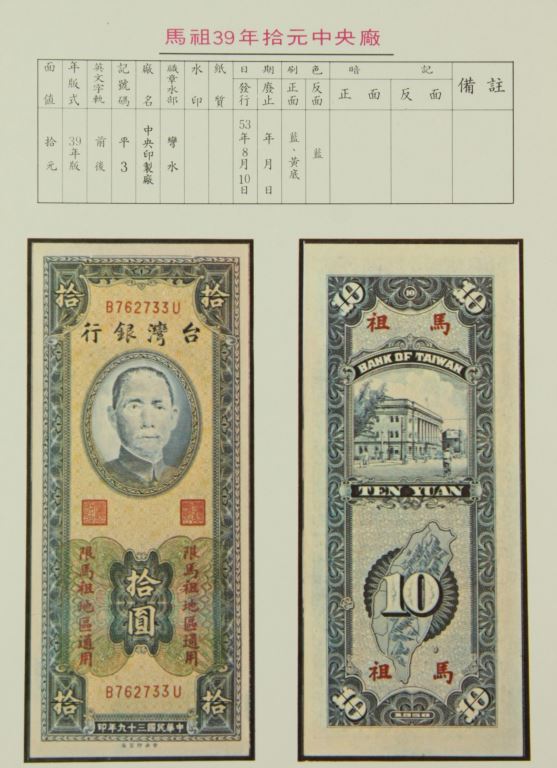 馬祖39年拾元中央廠