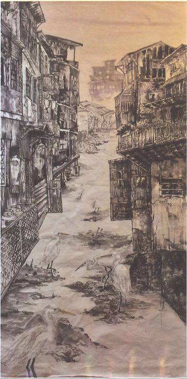 作品資訊 作者 汪子堯 類別 現代名人國畫 尺寸 180*90 作品介紹 (創作年代/2016) 白鷺鷥是我們過去對故鄉田野的印象,回憶中的鷺鷥種是在田野中覓食,而近期土地開發與農業變動,迫使他們必須循她法生存下去,而在某天下午的樓房間水溝旁我發現了牠們的蹤跡,而就是這衝擊讓我產生對土地的不一樣觀點。