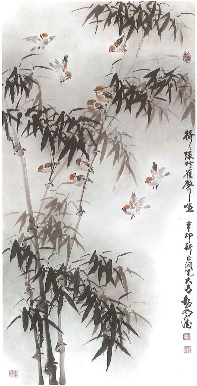 (創作年代/2011) 題識:猗猗綠竹雀聲喧 辛卯新正開筆大吉