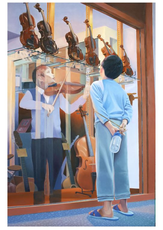 作品資訊 作者 陳泓義 類別 西畫 尺寸 70x70cm 作品介紹 『相信希望』這件作品,在主題的選擇上就已符合『洄瀾獎』的精神,充滿悸動與希望。 作品的用色柔和且繽紛,寒暖交織的構成非常巧妙,透過充滿期盼的小男童的背影將小提琴的精緻感與對音樂的嚮往與憧憬,帶入想像的世界,最後以虛構的拉提琴影像,表達對未來的期望。 作者透過人物的虛實對照,彰顯『有期望才有未來』的光明想望。