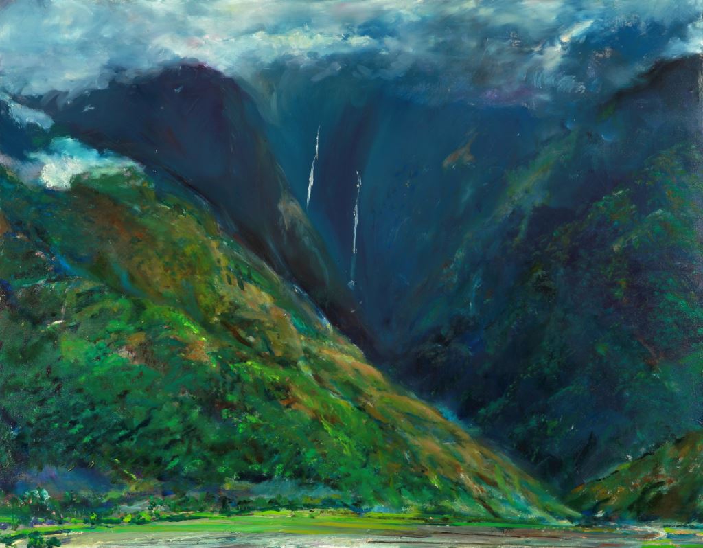作品資訊 作者 侯文欽 類別 西畫 尺寸 116.5x91cm 作品介紹 花蓮水源地─砂婆礑溪為美崙溪的源頭之一,發源於七腳川山,源頭標高2014公尺,流經沙婆噹山後出谷,為花蓮市自來水廠水源地。由太昌的農地上望向水源地,即興的以油畫冩生,抹上幾朵浮雲,飄出二行即時雨瀑,尋幽探勝,好山好水,就這樣點燃了畫家的所有感官。水源之水天上來,即使奔流到大海,也一定會重回天上,我們有幸住在天上人間的後山,應重視河川保育,生態维持。