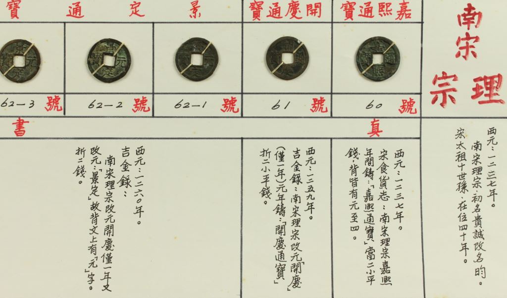 南宋理宗鑄「嘉熙通寶」/「開慶通寶」/「景定通寶」。