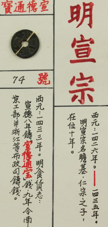 西元1433年。明食貨志:宣德八年鑄「宣德通寶」錢,九年令南京工部並浙江等布政司鑄錢。