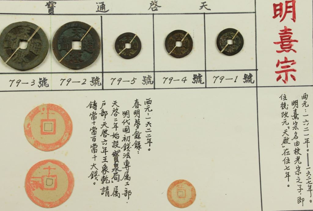 作品資訊 作者 明代 類別 民族古幣 尺寸 2.4*2.4cm/4.5*4.5cm 五枚 作品介紹 西元1622年。春明夢餘錄:明代國初錢法專屬工部,天啓二年始設「寶泉局」蜀戶部,天以六年王象乾請鑄當十當百當千大錢。