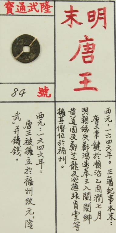 西元1646年,唐王披擁立於福州改元「隆武」並鑄錢。