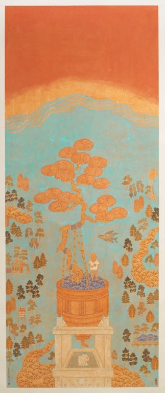 作品資訊 作者 潘信華 類別 現代名人國畫 尺寸 204x82 材質 紙本設色 作品介紹 在潘信華的創作題材中,貼近日常生活的花鳥樹木、溪流、房舍、船舶、人物、器物等經常可見,這源自於藝術家對日常生活的細膩觀察體認。透過不存在於現在或過去的場景、時間感濃厚交錯。