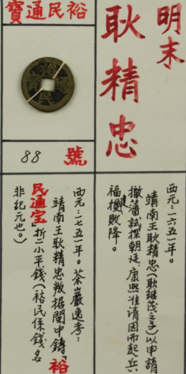 西元1751年。茶巖逸考:靖南王耿精忠叛據閩中鑄「裕民通寶」折二小平錢。