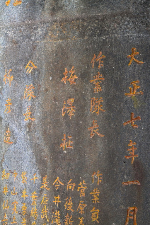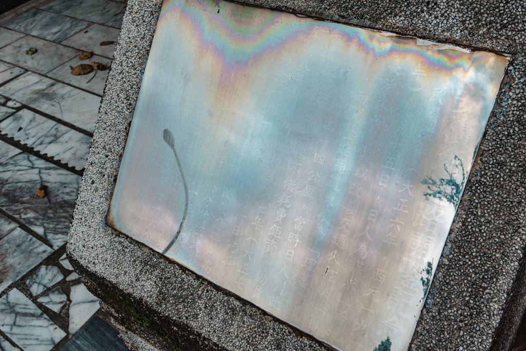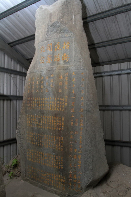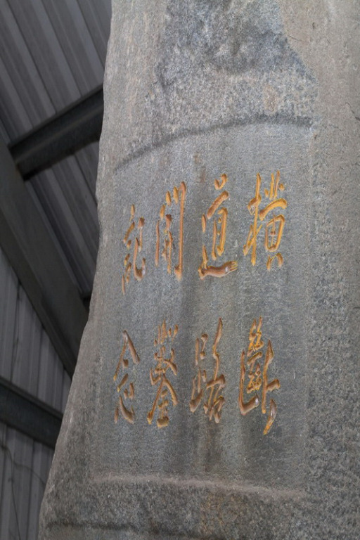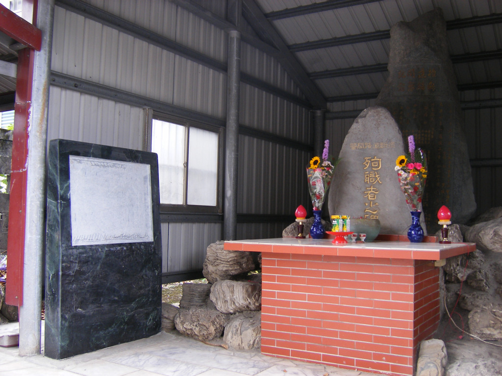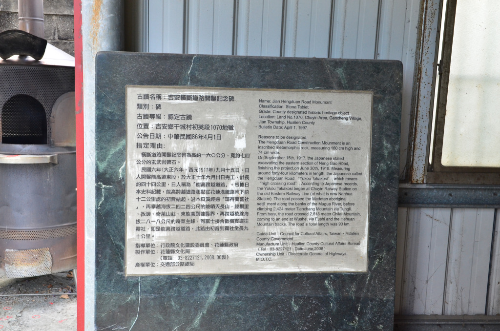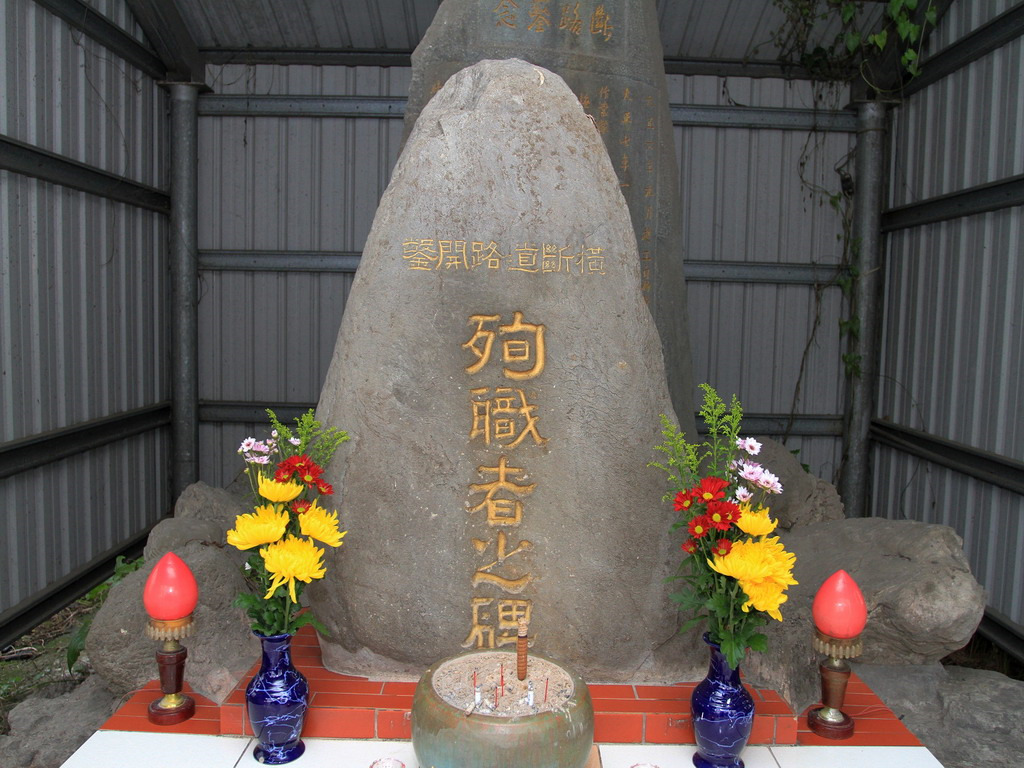 橫斷道路開鑿記念碑為高約一六○公分,寬約七四公分之玄武岩碑石,此開鑿記念碑及橫斷道路開鑿殉職者之碑原豎立於臺九線(今臺九丙公路)的左右兩側,殉職者之碑原面對西寧寺的右側大樹附近,後來因為道路拓寬關係,才將殉職者之碑移到現今的位置。
