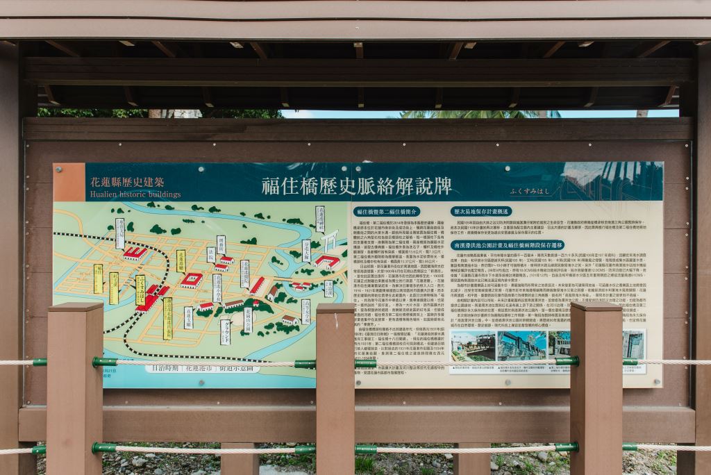 福住橋暨第二福住橋橋頭根據昭和6年(1931)《臺灣日日新報》中記載:「花港街的排水護岸工事竣工,福住橋十八日開通」。由此可知福住橋建於昭和6年(1931),雖然橋頭的橋名及竣工日期被人以水泥抹去,不過仍留下部分的字形留存,在福住二號橋的橋頭北側橋頭柱上留下完整的「第二ふくすみはし」日文草寫,相當地美觀,另外還可見竣工日期殘跡。現在溝仔尾人不多,這兩座古老的橋樑除了偶爾會吸引一些好古的人訪求之外,大多數的時間就是安靜的佇立,見證著往日此地─福住通的繁華。