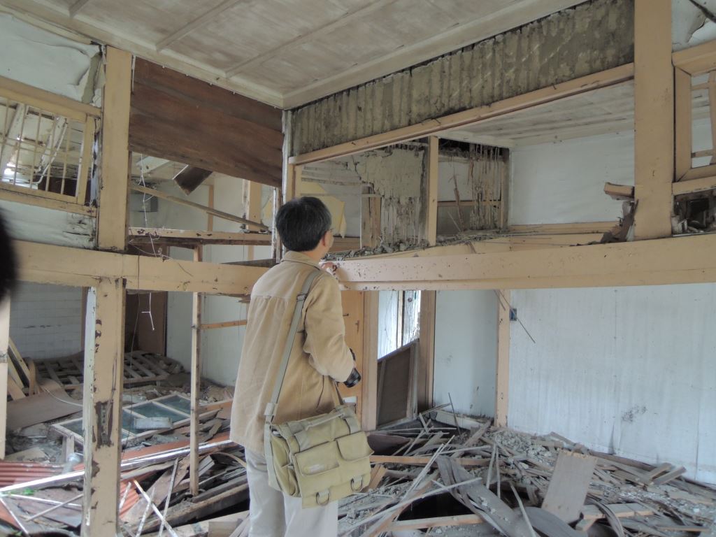 二、主建物外加斜撐補強材,且後方增建加強磚造防颱室亦與原構配合良好