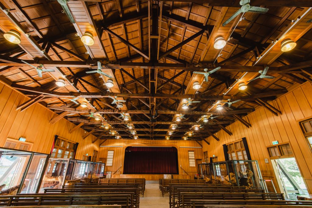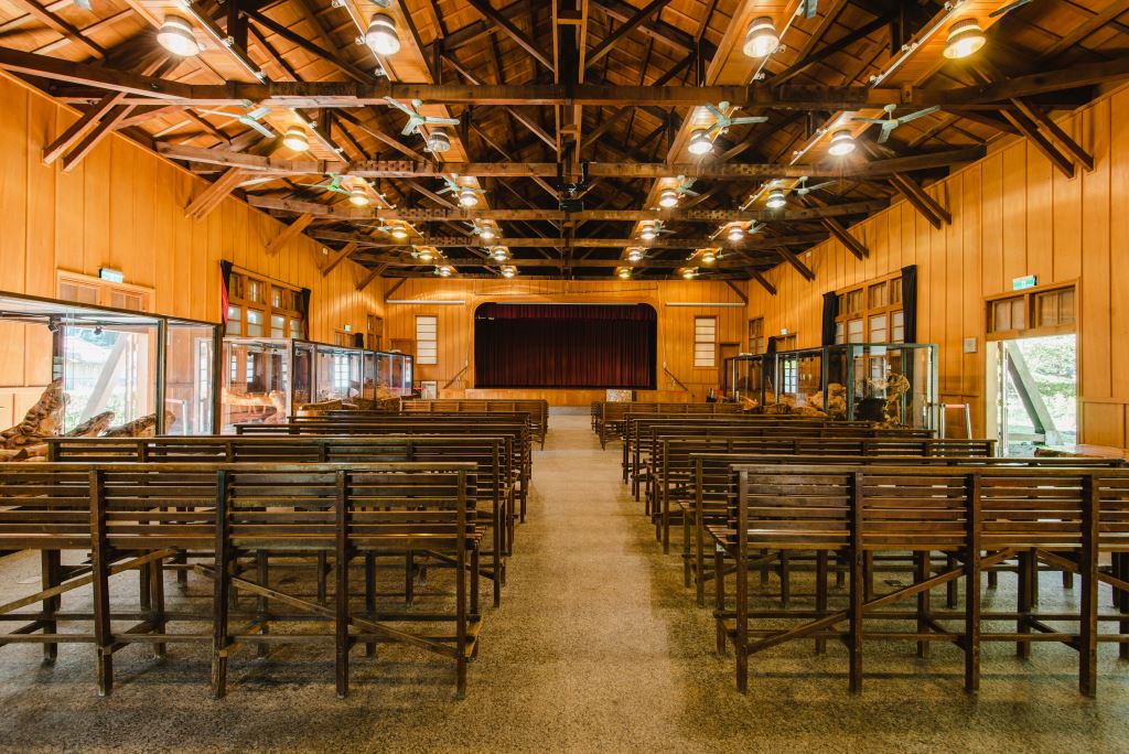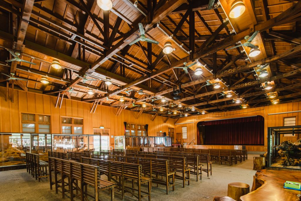 林田山林場內最引以為傲的中山堂,整棟建築以全檜木建造而成,這棟建築建於民國44年4月。早期這棟中山堂,除了提供森榮國小舉辦各項活動外,也提供林場舉辦各項活動。民國50年中興紙業提撥營業額千分之三作為職工福利金,林田山林場分到30萬元,使用近20萬元購買日本進口的電影放映機兩部,放映影片供員工欣賞,是當時東部最先進的設備,當然是林田山林場最轟動的大事。每當林場辦公廳公佈欄貼出粉紅色的通知單,就表示中山堂當晚有電影可以欣賞,當時住在長橋里的居民還會搭乘火車到林場來看電影呢!