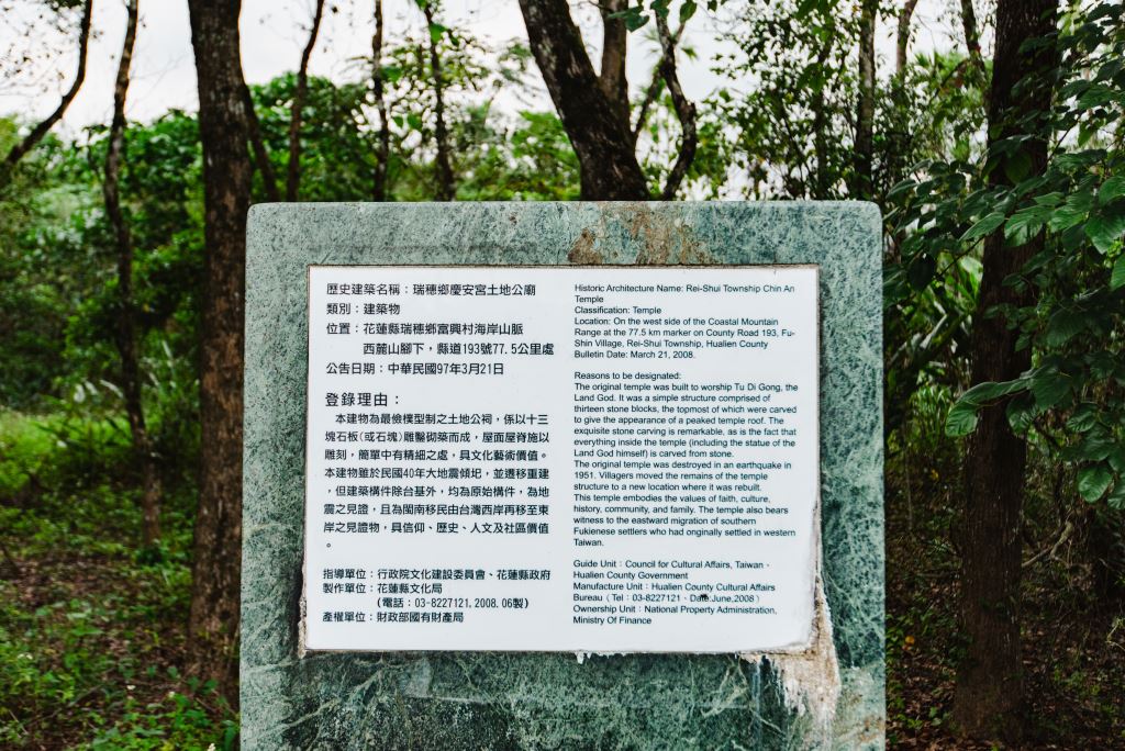 2.為閩南移民由台灣西岸再移至東岸之見證物,具歷史價值。