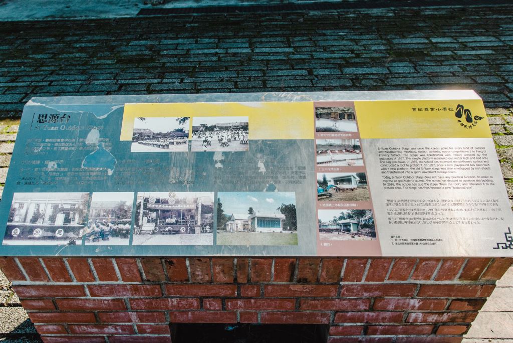 這棟建築為日治時期豐田尋常高等小學校之劍道館,也稱為武道館。當時除了當作練習武道外,也當作是練習劍道的場地使用;當然也成為學校集會時的最佳場所。此建築為磚造瓦屋頂式建築,雖然現今屋頂已重新整理,改用新式仿瓦片式鐵皮,不過支撐屋頂的結構仍是使用木造建構。