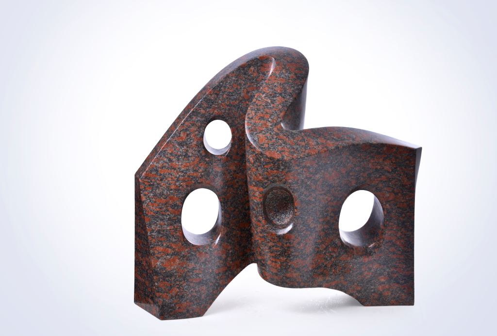 得獎資訊 得獎年度 2016 類別 立體造型 作品資訊 作者 劉金德 尺寸 60*20*60cm 材質 花崗岩 作品介紹 以山水形象為基底與原住民歌詠意象結合,八孔即為八個音階,彷彿風從中呼嘯而過,即能響起生命之聲,迴盪山海間永續不滅的偉大。 作品賞析 造形必須靠材料來呈現,材料選對了成功一半。深咖啡色的花崗岩,相當適合其造形微妙變化,穿透的圓形其大小、比例在整體造形上營造出神秘的三度空間洄游的無形軌跡。 評審委員:廖清雲、張子隆、蒲浩明