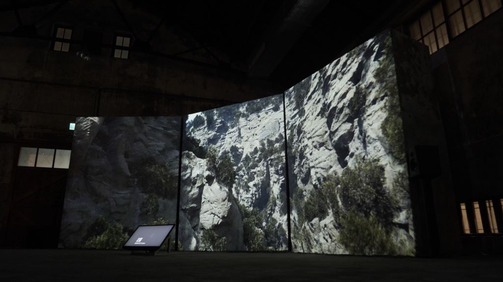 Ni Xang Shin is to introspect two realities above mentioned; It takes landscapes of the Hualien Gorge as the subject of "digital sketch". Upon the field survey, we used a game engine with its real-time ray-tracing capabilities to form a virtual scenery assembled by landscape, symbols, and digital information, thus to reform the on-site sensory experience across a wide range of time and space. The scene uses a huge number of 3D scanned objects to piece together a realistic terrain, and by collecting real-world environmental data, including wind speed, rainfall, earthquake magnitude, depth, latitude and latitude etc., then, to control the corresponding parameter in the virtual world to produce the unpredictability of the real world in our virtual imagery.
