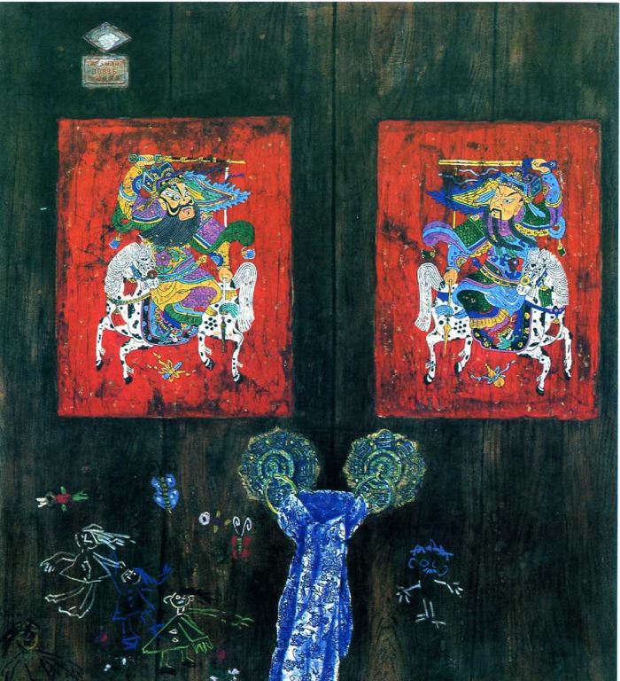 得獎資訊 得獎年度 1998 類別 應用美術 作品資訊 作者 張文暐 尺寸 125*125cm 材質 複合媒材 作品賞析 以熟練的蠟染龜裂紋表示時間的痕跡,門神為畫面的主體,張貼於斑駁的木門上,很具鄉土味。又以小孩的塗鴉記號來裝飾,更增加設計的趣味性。 評審:劉洋哲、林國平、張敏儀
