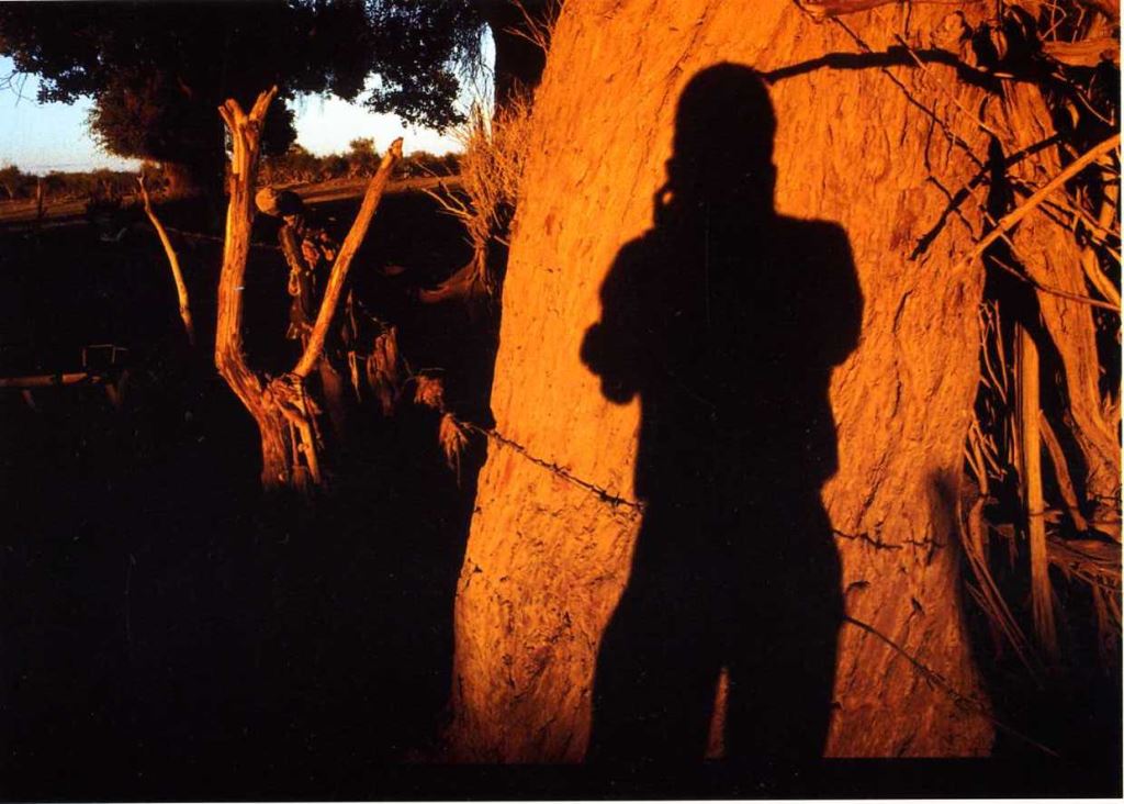 得獎資訊 得獎年度 2001 類別 攝影 作品資訊 作者 王祥薰 尺寸 95*70cm 材質 相紙 作品賞析 一個人按下決定性的瞬間,猶如凹刻入大自然的肌理中,是那麼的隨意,卻彰顯攝影人存在於照片之先的意義,畢竟是人讓攝影發出意義的思索的。在哪裡拍照或去哪裡拍照可能都不比誰在哪里和去哪裡重要了。 評審:黃明川 作者利用金黃的斜光,將自己的影子強烈而明顯地呈現在畫面右側的老樹幹上,對照後方背景,構成一幅極為特別的影像,充滿創意和個人的風格與魅力。 評審:莊靈