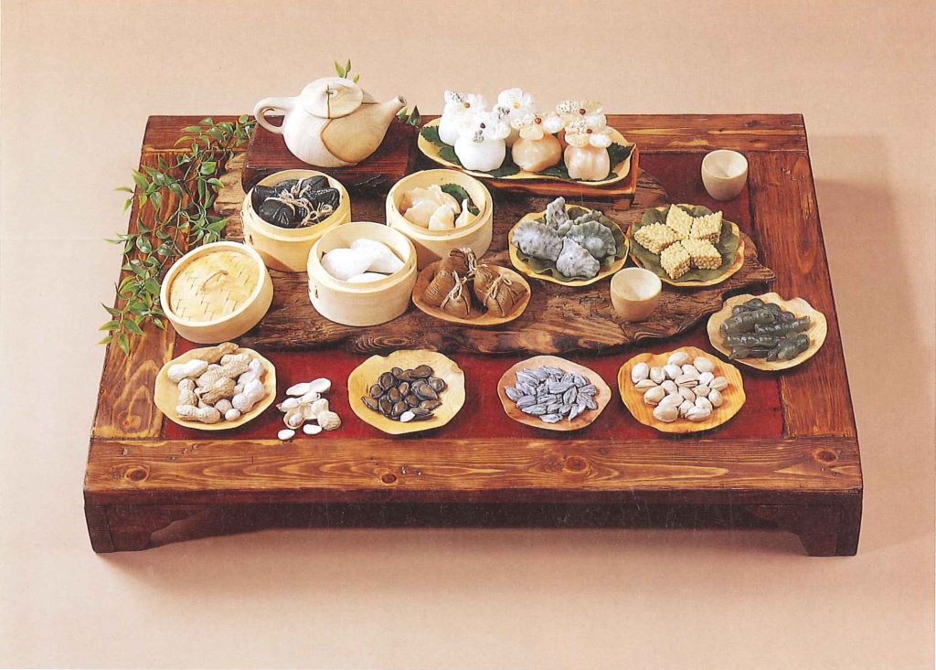 得獎資訊 得獎年度 2002 類別 應用美術 作品資訊 作者 林仁德 尺寸 67*53*21cm 材質 石材、複合媒材 作品賞析 以石雕技藝表現如此多種食物的滋潤而又似乎聞到飄香之逼真質感,實為石雕技巧之一絕,是藝術與生活相結合之傑作也。 評審:楊英鏢
