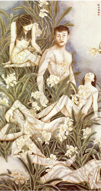 得獎資訊 得獎年度 2005 類別 國畫 作品資訊 作者 楊明珠 尺寸 226*103cm 材質 墨彩 作品賞析 「惘」在本次參選作品中脫穎而出,主要作者在表現情境上整體構思明顯,詮釋春花情迷的意涵,結合技巧,勾勒線條流暢,敷彩優美,尤其以疊影技巧將人物與野薑花虛實間交錯襯托迷情中的推想。 評審:林永利、許郭璜、蔡政達