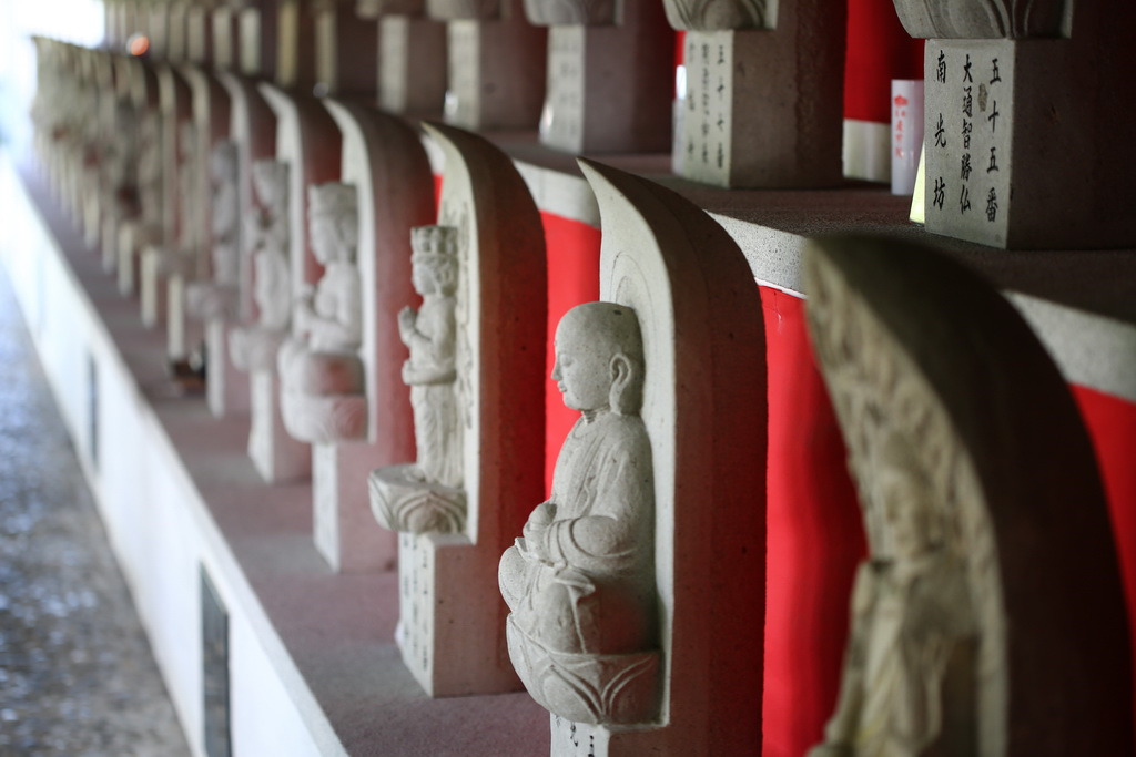 - 古蹟「慶修院」日式宗教建築、八十八尊石佛、不動明王像、百度石等