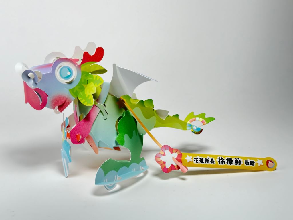 文化局吳勁毅局長表示,本年度小提燈為紙雕家洪新富老師所屬的扶風文化事業有限公司設計之「GoGo龍」,選用之紙材,在環境中可自然分解,燃燒時不產生戴奧辛,LED燈具組裝由庇護工場負責;「GoGo龍」騎著可愛綠能的電動車,穿梭在花蓮的好山好水中,採擷著花蓮的美食與美好經驗,化為身上的青春活力色彩,想要把花蓮的好,分享給全世界」。「GoGo龍」身上的色彩有晴天氣朗,綠草如茵、繁花似錦、海洋波動,加上提把的星星,讓人美夢成真、神清氣爽。「GoGo龍」全身的關節可以活動,除了手動調整外,在提動時全身可動,活潑可愛。當拉動小車時,龍的翅膀還會隨之拍動,增添互動樂趣。活動的尾巴可以隨著提動或風吹左右搖擺,創造更多的互動效果,而尾巴上的彩色環,正是聯合國永續發展目標的SDGs的標誌圖像,這也是花蓮永續發展目標的前進方向。。