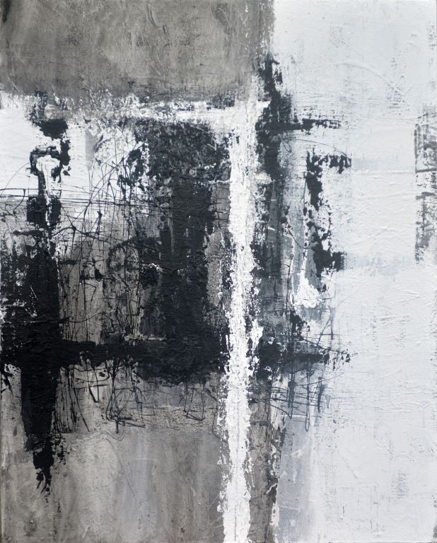 《黑白行走》是李松勇一系列以黑、白兩色作為畫面基調的平面作品,去除具象和不需要之物,只用線條、形狀,以及黑、白兩色來表現內在情緒和外在環境的各種狀態,可能同步、膠著、壓抑或掙扎,並於最後抵達豁然與自如心境。也期待觀看者可藉由這系列作品,和他一同體會隨遇而安,隨心自在。