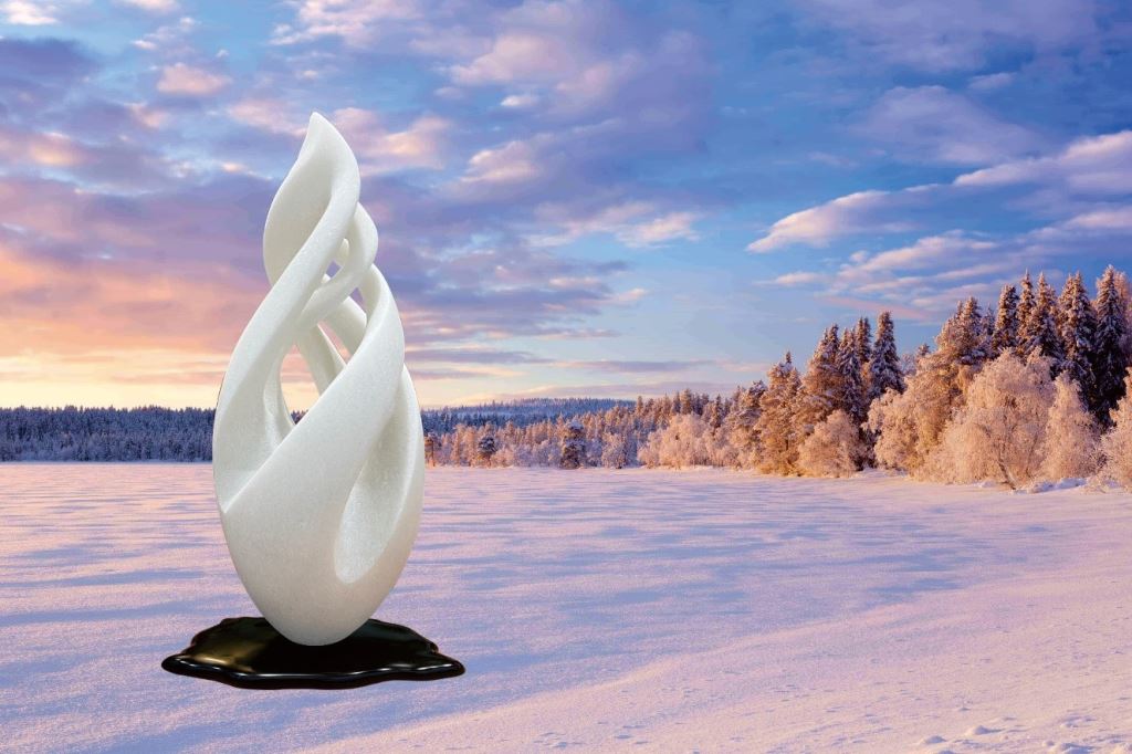 《榮Prosperity》以東方五行的概念,金、木、水、火、土,為構成萬物的主要元素,以作品下方蛋形中蔓延出五條分枝,旋繞於頂點中心會合,象徵五行能量的匯聚,構築出中空堅固的結構,虛與實互相依持,相生相剋,底座如大地能量源頭,萬物吸取天地精華,蓬勃生長繁榮昌盛。花蓮縣長徐榛蔚期許透過駐村石雕作品設置在芬蘭這塊饒富自然資源之土地,傳遞來自花蓮的誠摯祝福。