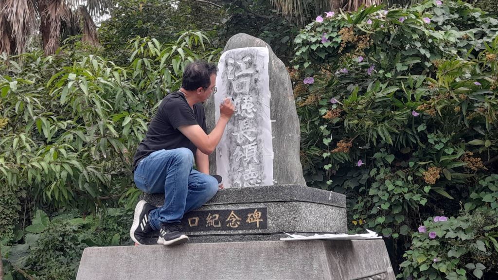 照片二.拓碑工作照(江口廳長頌德碑)