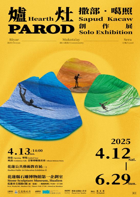 開幕座談會後,藝術家將發表其最新音樂專輯《PAROD爐灶》,進一步以音樂延續創作脈絡,讓觀眾透過不同感官維度感受作品的深度與情感。展覽期間,亦將舉辦縣境公共藝術參訪活動,帶領民眾探索花蓮的公共藝術作品,並辦理融合部落傳統領域、生態環境與文化多樣性的公共藝術體驗,詳情請密切關注文化局官網。