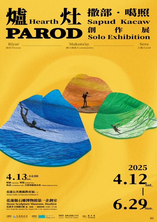 展覽名稱「PAROD」來自阿美族語,意指「爐灶」或「三石灶」,象徵藝術家與海洋、土地、社區三者之間的緊密連結。展出作品涵蓋繪畫、雕塑、裝置、影像與音樂等多元形式,展現撒部在港口部落(Makuta‘ay)的生活記憶與文化思索,並傳遞其對自然與族群文化的深度關懷。值得一提的是,撒部‧噶照長年投入阿美族語言、歌謠與音樂創作,使其公共藝術與戶外裝置作品在空間、環境、媒材之間達到細膩的共鳴,作品與大地景緻相互輝映,展現撼動人心的生命能量。