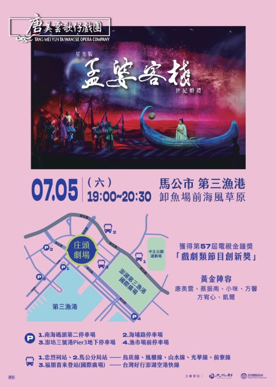 【轉知】 澎湖縣政府與文化部共同主辦「庄頭劇場 藝日限定」唐美雲歌仔戲團星光版《孟婆客棧:世紀婚禮》活動