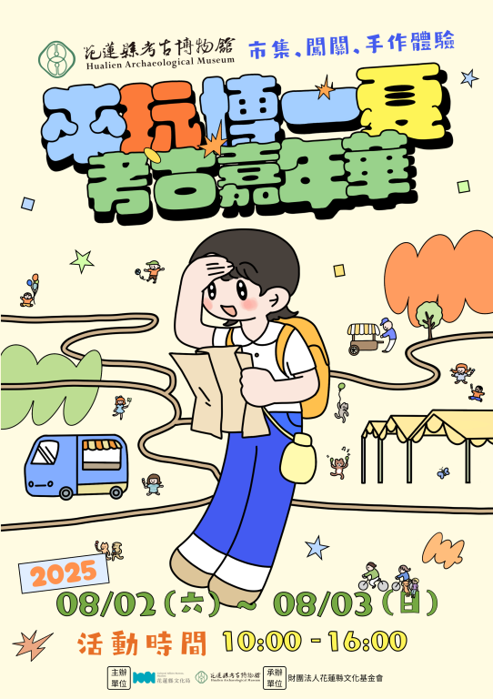 這個夏天,一場知識與趣味兼具的活動即將在花蓮登場!花蓮縣文化局委託財團法人花蓮縣文化基金會營運之花蓮縣考古博物館將於2025年8月2日至3日舉辦「來玩博一夏!」夏季雙日嘉年華,以多元有趣的方式帶領民眾深入認識花蓮豐富的考古文化與史前故事,結合親子體驗、市集、解謎導覽與閱讀活動等,打造充滿學習與樂趣的夏日文化派對。活動期間全館免費入場參加,歡迎大小朋友共襄盛舉!
