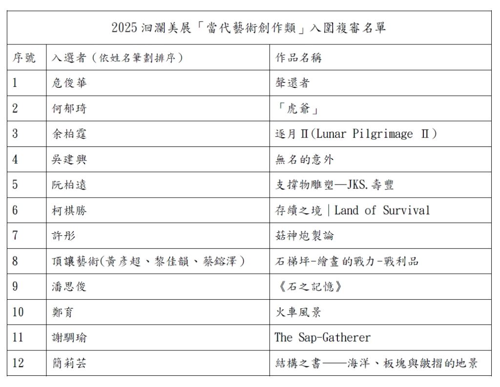 2025洄瀾美展「當代藝術創作類」入圍複審名單公告