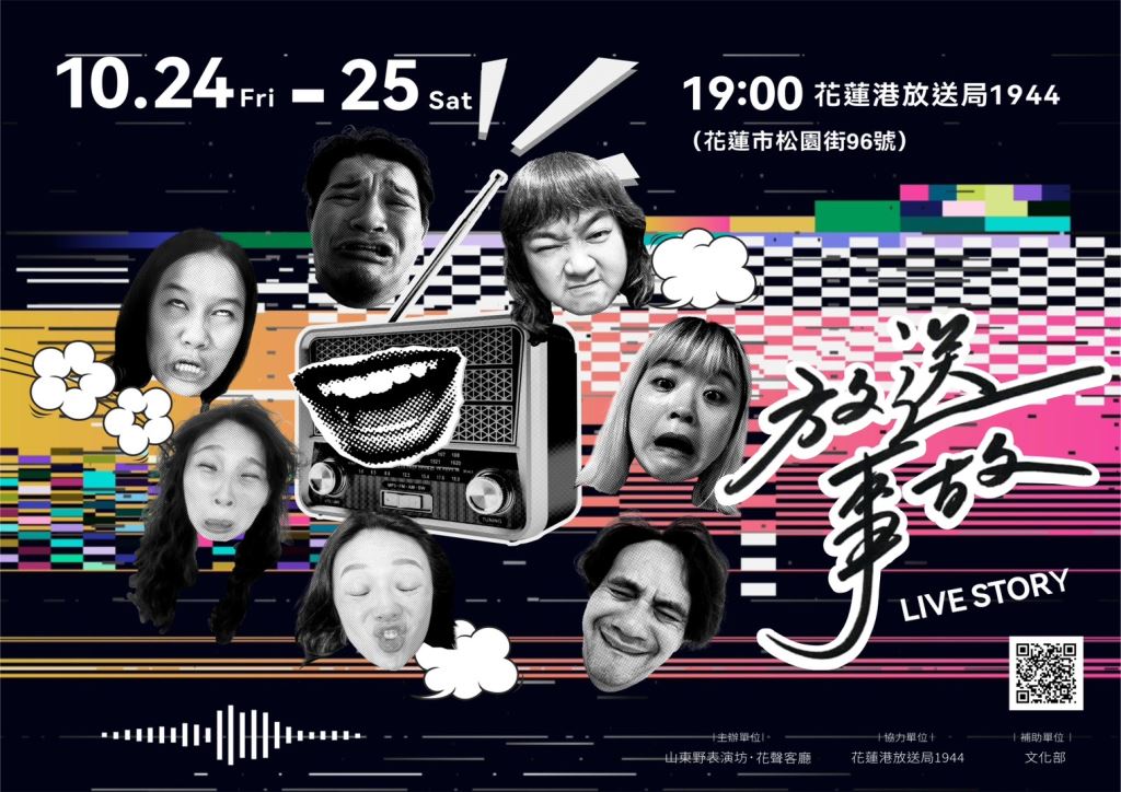 花蓮在地傑出演藝團隊「山東野表演坊」,再度攜手花蓮在地專業音樂團隊「花聲客廳」,即將在極具歷史意義的場域,也是過去的舊中廣基地「花蓮港放送局1944」,於2025年10月24-25日推出年度新作《放送事故 LIVE STORY》。這場結合了歷史空間與創新聲音技術的非特定場域演出,是由文化部、花蓮縣政府與花蓮縣文化局共同輔導,邀請觀眾走進曾傳遞國家聲音的舊廣播電台,聆聽一場關於「表達與被噤聲」的青春革命。