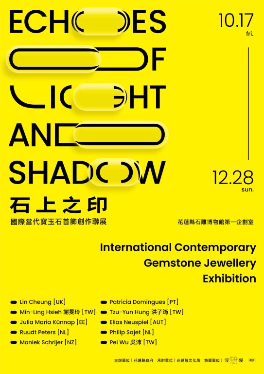十位藝術家,十種聲音,跨越萬里共同在花蓮這片土地上留下交會的印記,與花蓮展開對話。寶玉石不再只是靜止的礦物,而是承載思想、記憶與情感的容器。這一道道穿透石上的光與影,敲醒了臺灣與國際當代首飾舞台間的回響,引領觀者以嶄新的視角看見寶玉石材料的無限可能。邀請您至石雕博物館一同探索這場國際性的首飾交流饗宴。