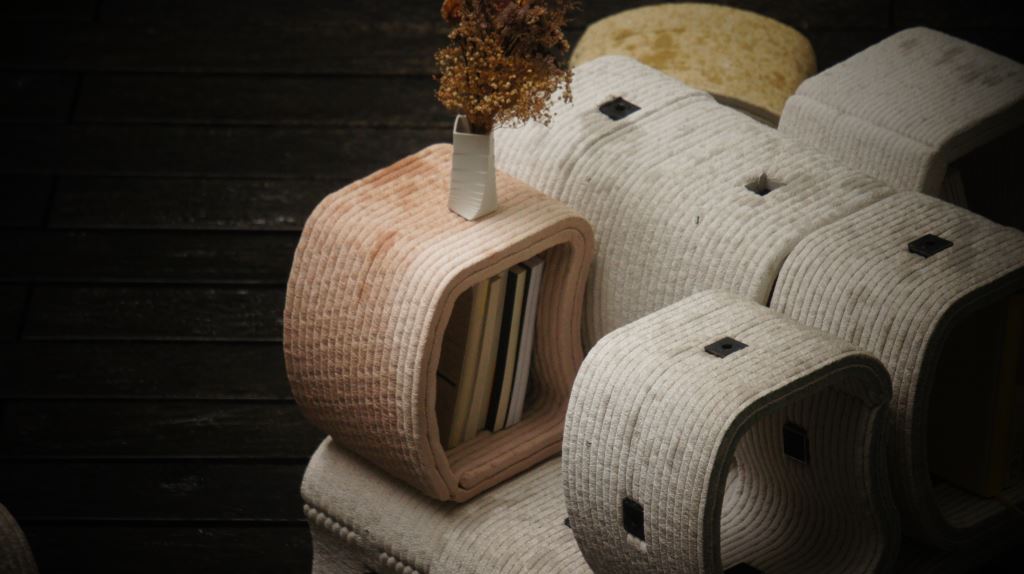 面對過去、推進當下後,積極展望未來,方能看見更多希望。「未來的形狀—科技中的創生循環」展區面向與環境共生的來日,開創石材餘料在循環再生與科技應用上的潛力,以C-Cube Lab與樂土(Lotos)等研發團隊的逐步實踐,啟發石材在永續領域中的全新想像。