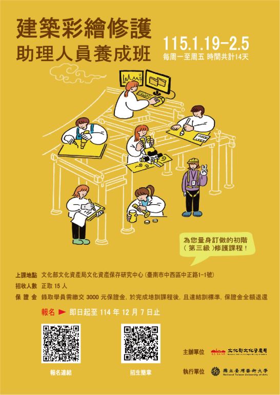 文化部文化資產局 2026建築彩繪修護助理人員養成班招生簡章